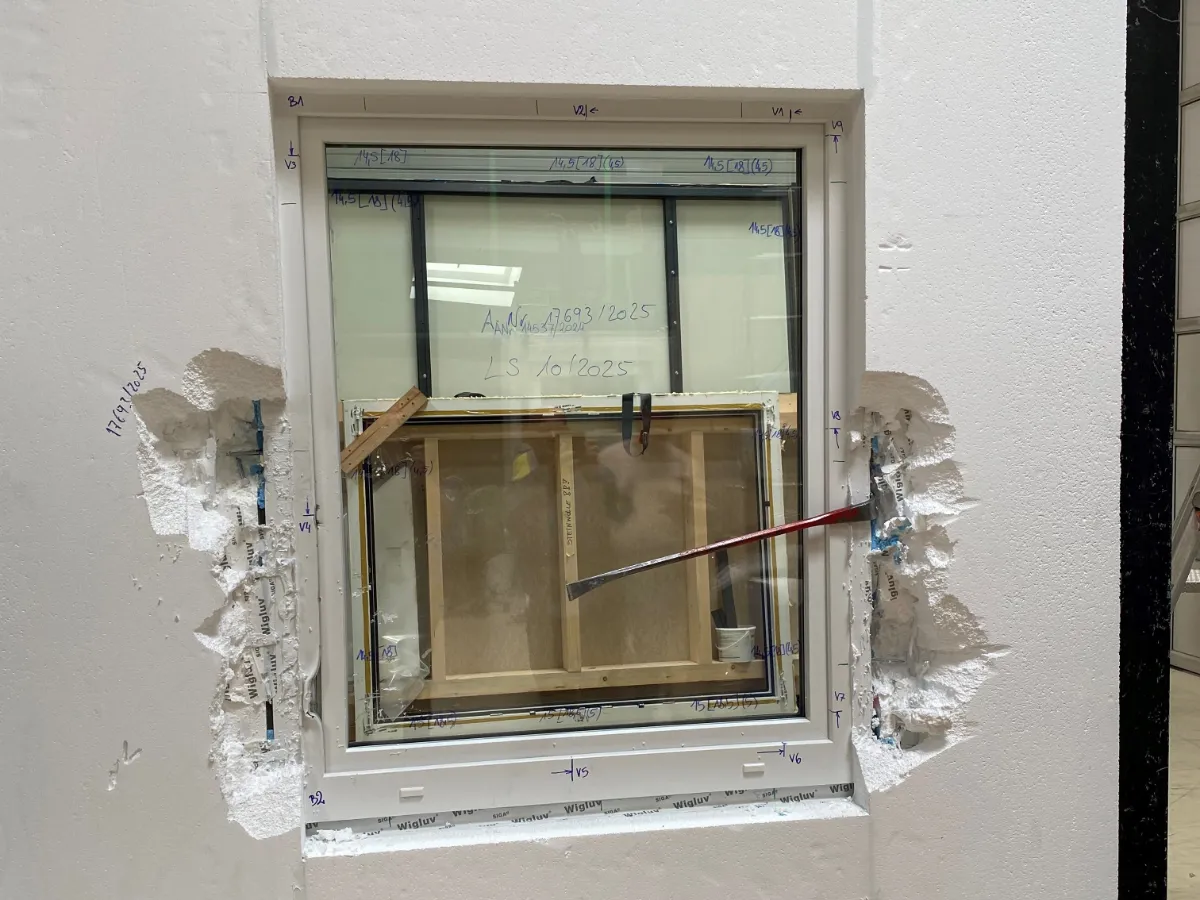 In einem zweistufigen Test werden die kritischen Bereiche mit standardisierten Einbruchswerkzeugen auf ihre Sicherheit geprüft. Der erste Versuch erfolgt zwischen dem Fensterrahmen und dem Klima-Konform-System. Ergänzend wird der Angriff auf die Anbindung des Vorwandmontagesystems an den Wandkörper durchgeführt.