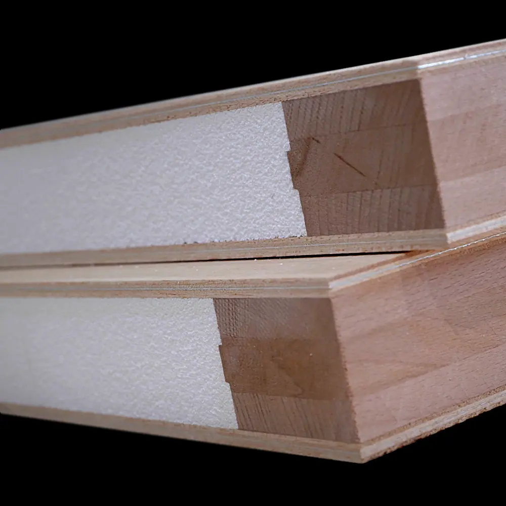 Durch die hohe Festigkeit der Kernplatten genügen dünne Decklagen – das spart Gewicht und Kosten.